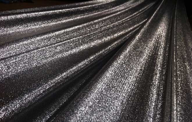 Bei dem verwendeten Material handelt es sich um schwer entflammbares Effektgewebe aus der Theater- und Bühnentechnik. Der Stoff besteht aus 100% Polyester bei einem Gewicht von 95 g/m2. Die Rollen wurden in einer Laufbreite von 310 cm angeliefert und zugeschnitten. Insgesamt wurden 25 m Konstruktionsholz, 60 Laufmeter Stoff und über 100 Schrauben verbaut.