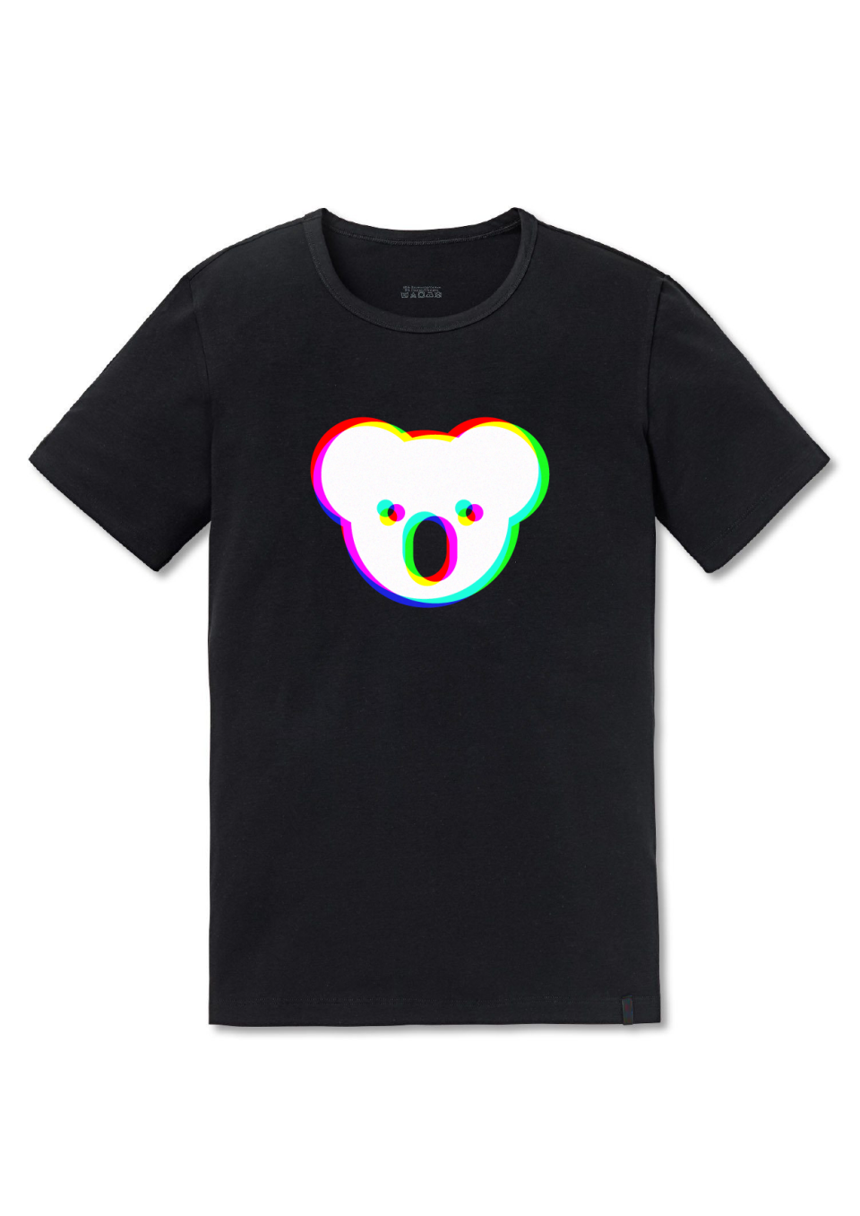 Motiv „RGB Koala 4“ auf schwarzem T-Shirt
