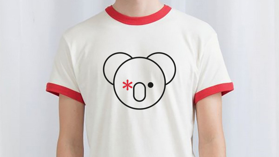 Motiv „Koalakopf“ auf weißem T-Shirt mit roten Bündchen