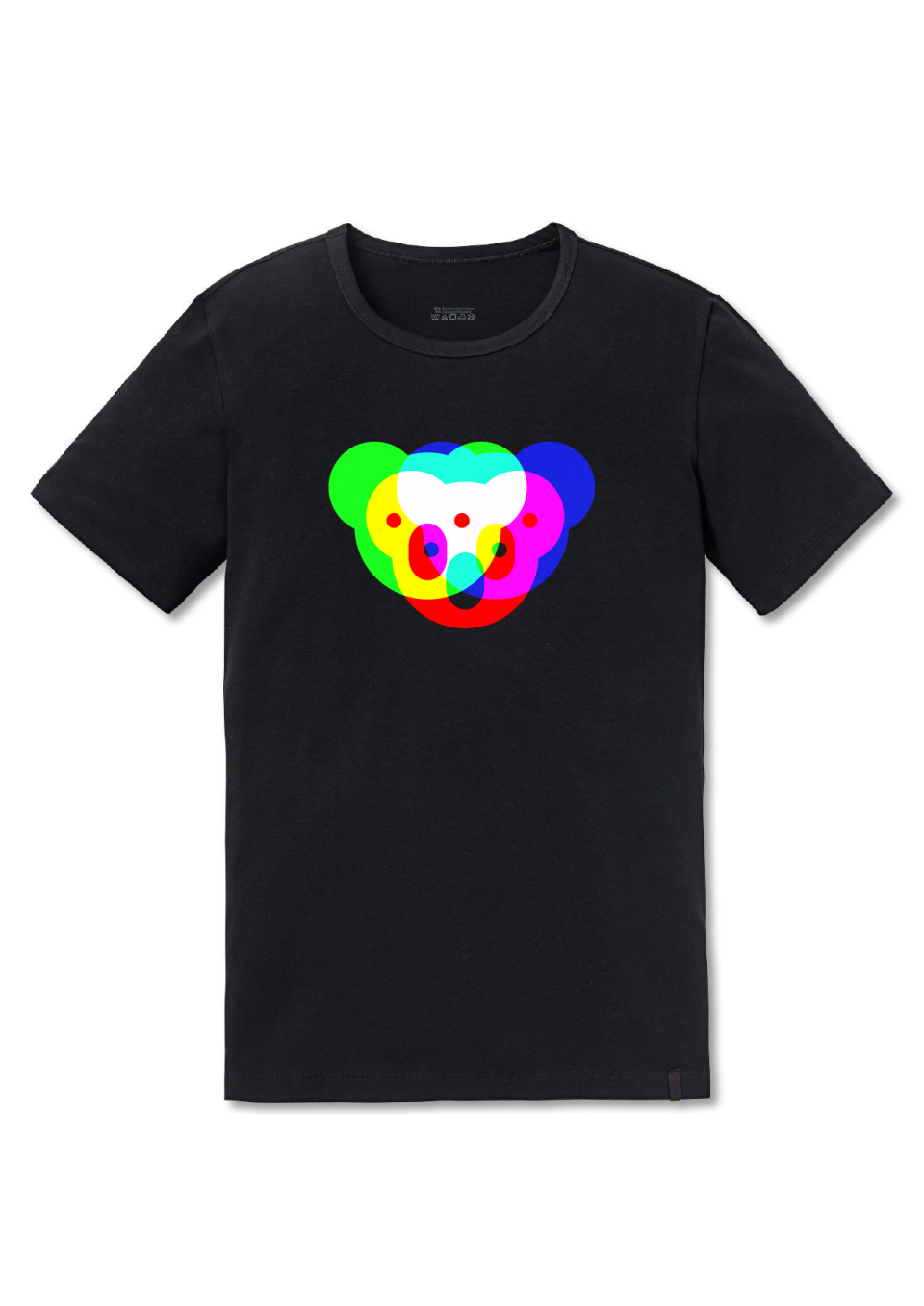Motiv „RGB Koala 3“ auf schwarzem T-Shirt