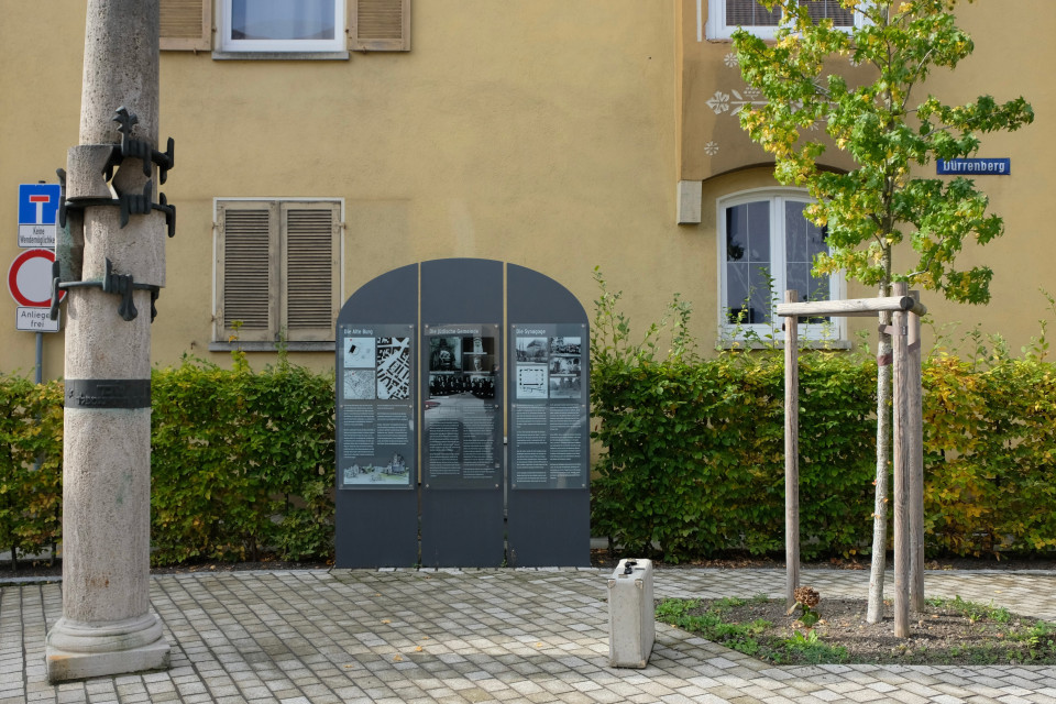 Einen besonderen Platz nahm dabei eine Gedenkstele zur Erinnerung an die jüdische Synagoge von Heidingsfeld ein. Insbesondere ab 1565 ließen sich aus Würzburg vertriebene Juden in Heidingsfeld nieder und die Stadt wurde zu einem wichtigen religiösen Zentrum der jüdischen Gemeinde und war sogar im frühen 18. Jahrhundert Sitz des Oberrabbiners von Unterfranken. Im frühen 19. Jahrhundert hatte Heidingsfeld die zweitgrößte jüdische Gemeinde im damaligen Königreich Bayern. Der Gedenkort Dürrenberg erinnert an den ehemaligen Standort der alten Burg, die später von der jüdischen Gemeinde erworben und zur Synagoge umgebaut wurde.