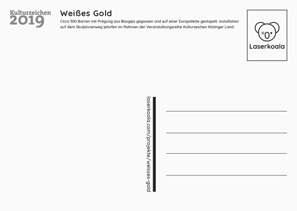 Das Kunstwerk „Weißes Gold“ beschäftigt sich kritisch mit dem Thema Rohstoffgewinnung und ihrem Einfluß auf die Umwelt. Gips in Form von Goldbarren symbolisiert den Wert der Bodenschätze für unsere Gesellschaft. Die überspitzte Stilisierung weist darauf hin, dass hinter dem Abbau eine gewinnorientierte Industrie steht. Durch den Widerspruch zwischen Material und Form entsteht eine Verfremdung, die das Interesse des Betrachters weckt und neue Perspektiven auf das Thema ermöglicht. Gips ist ein in der bildenden Kunst schon immer beliebter Werkstoff, der vielfältig in Form von Reliefs, Büsten und Skulpturen zum Einsatz kommt.