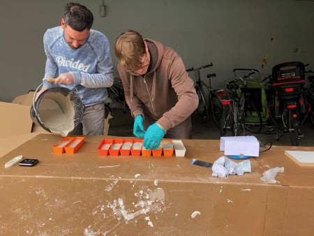 Aktuell arbeiten wir mit 3D-Druckverfahren an der Herstellung eines Rohlings, bzw. einer Gussform. Die ersten Experimente sind vielversprechend. Im nächsten Schritt werden die Teile nachbearbeitet und auch mit Silikonformen weiter experimentiert.