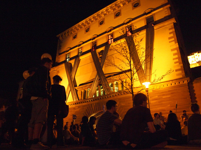 XXV Fassadeninstallation - Veranstaltung bei Nacht