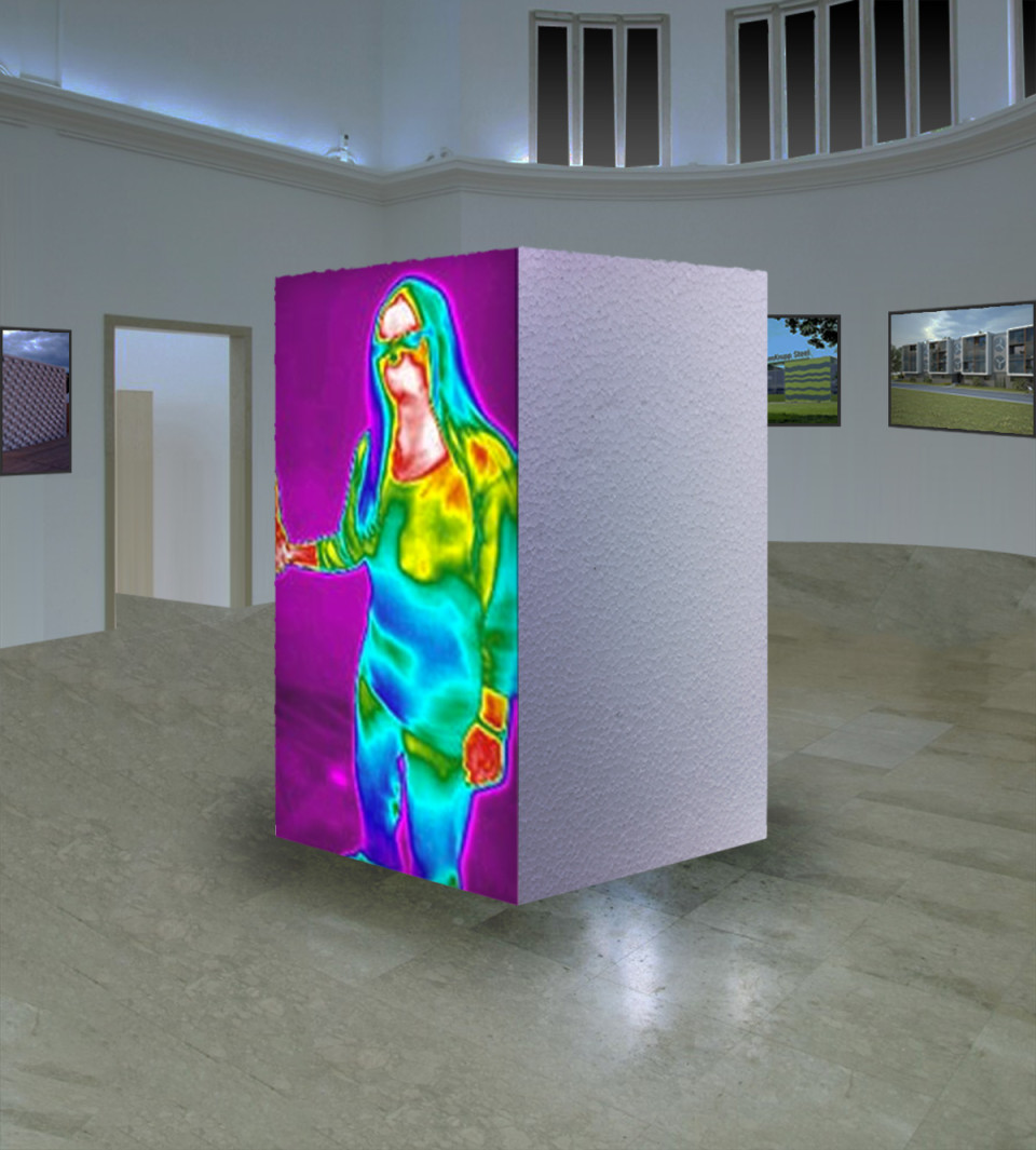 Installation Styroporkubus mit Wärmebildprojektion