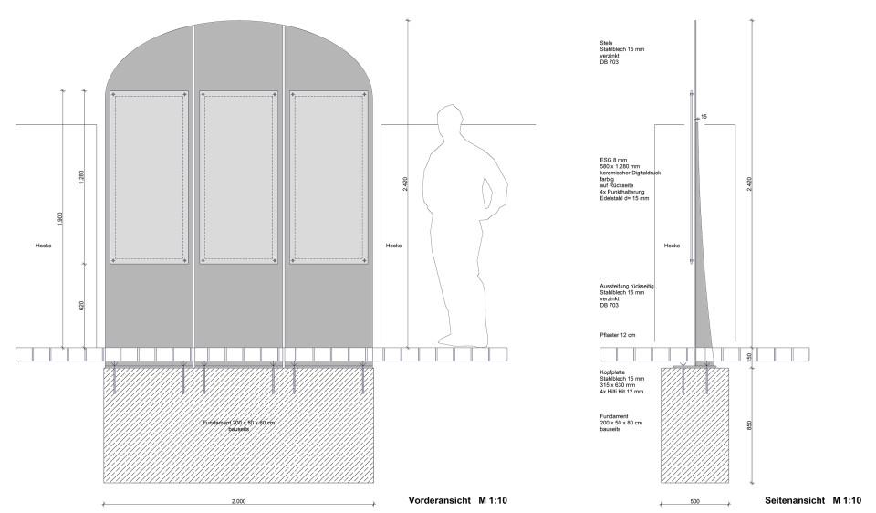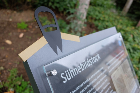 Schild mit Stahlgestell 45° am Sühnebildstock