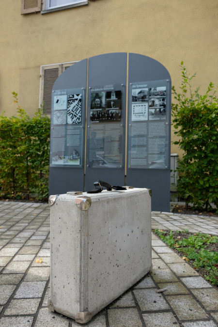 Die Gedenkstele besteht aus 3 Tableaus mit Bildern und Informationen zu diesem bedeutsamen Teil der Heidingsfelder Geschichte. Die Inhalte wurden in Zusammenarbeit mit dem Johanna-Stahl-Zentrum erarbeitet und der Platz mit dem Gartenbauamt der Stadt Würzburg umgestaltet. An die deportierten Jüdinnen und Juden erinnert außerdem ein Koffer mit Bezug zum DenkOrt Deportationen vor dem Würzburger Hauptbahnhof. Der Gedenkort wurde als erster Standorte des Leitsystems bereits 2018 fertig gestellt und übergeben.
