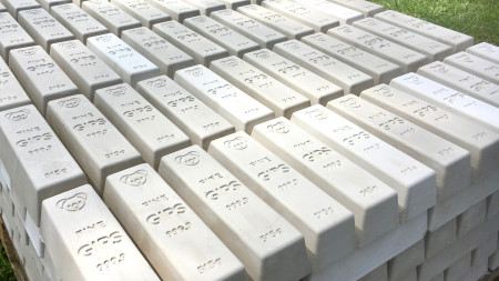 Entwurf: Europalette mit gestapelten Gipsbarren